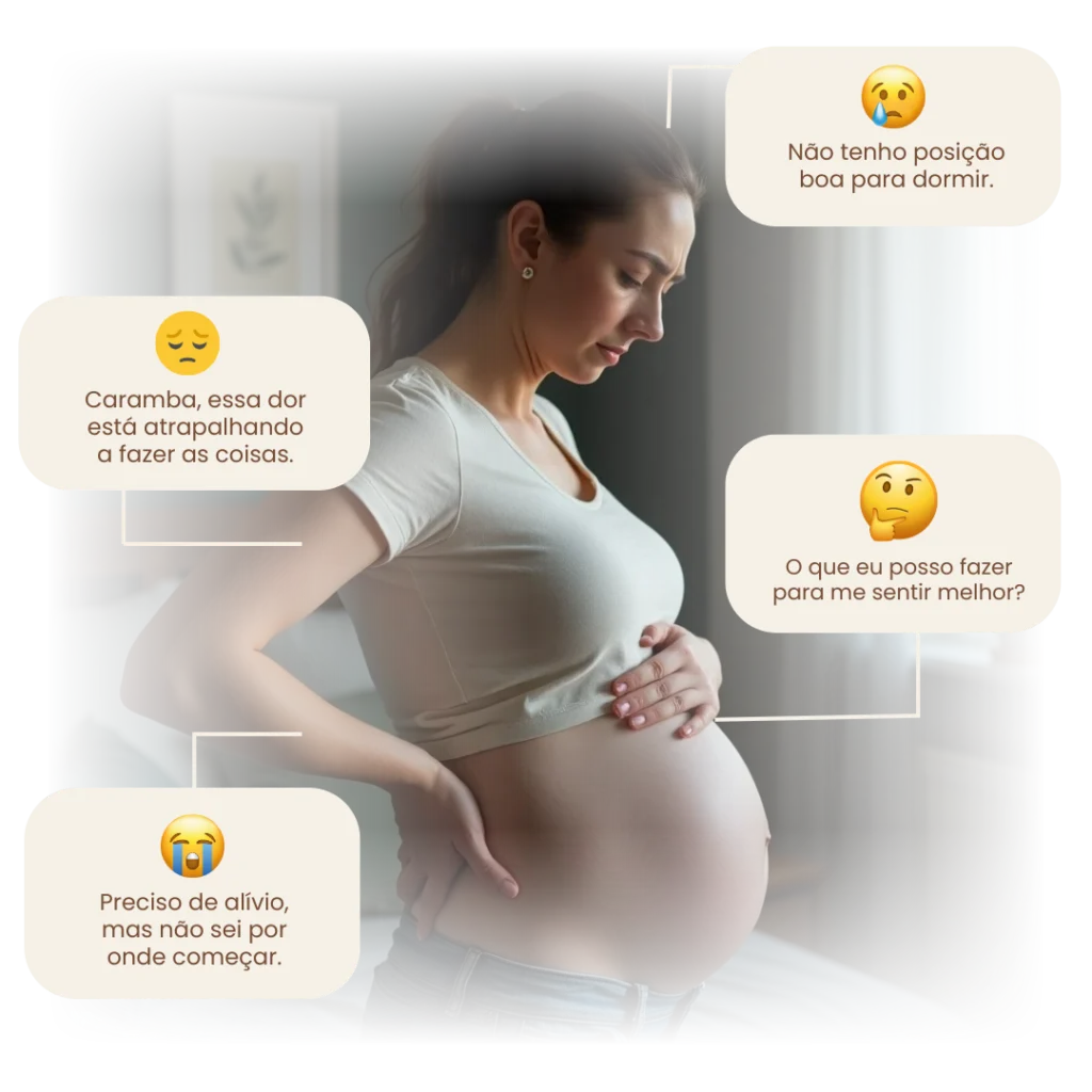 Se você se identifica com ao menos 2 itens acima, o Guia Prático de Alívio da Dor Lombar para Gestantes é para você!